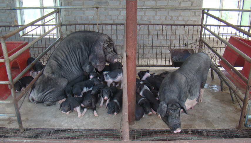 “蒙草(cao)(cao)豬(zhu)(zhu)(zhu)”是(shi)我(wo)公司(si)獨家研(yan)發、育種、養(yang)殖的(de)新品種,目前是(shi)該品種世界唯一的(de)大型育種基地。采用(yong)(yong)野豬(zhu)(zhu)(zhu)做父系,香(xiang)豬(zhu)(zhu)(zhu)做母系,雜交一代;再用(yong)(yong)雜交豬(zhu)(zhu)(zhu)做父本,梅山豬(zhu)(zhu)(zhu)做母本,所產的(de)“三元豬(zhu)(zhu)(zhu)”繼(ji)續橫交固定,即為(wei)帶有自有知識產權的(de)“蒙草(cao)(cao)豬(zhu)(zhu)(zhu)”。通(tong)過(guo)多年(nian)的(de)青貯(zhu)種植技術研(yan)究(jiu),通(tong)過(guo)牧(mu)草(cao)(cao)青貯(zhu)飼(si)草(cao)(cao)的(de)喂養(yang),實(shi)踐和檢驗表明,通(tong)過(guo)微生(sheng)物發酵飼(si)草(cao)(cao)的(de)喂養(yang),能(neng)夠使(shi)肉質(zhi)得(de)到極(ji)大提升。具有食草(cao)(cao)性、耐寒性、抗病力(li)強、耐粗飼(si)、繁(fan)殖率高,經產母豬(zhu)(zhu)(zhu)在(zai)15—18頭;肉質(zhi)品質(zhi)極(ji)佳,具有香(xiang)豬(zhu)(zhu)(zhu)和解(jie)放前家養(yang)散土豬(zhu)(zhu)(zhu)之品味。