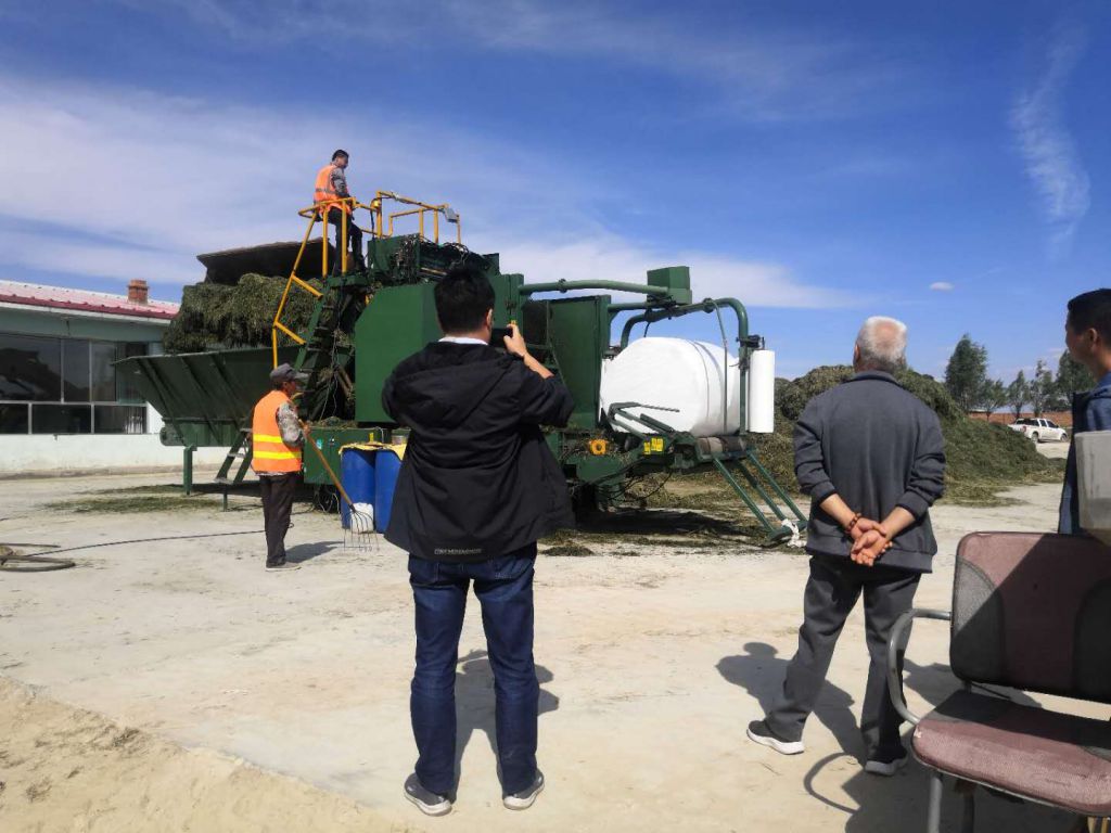 我司(si)于今年9月初首次開展黑麥草(cao)青貯加工(gong)作(zuo)業,首批(pi)作(zuo)業地點選定在呼和浩特市附近基(ji)地。合作(zuo)伙伴得知這一業務(wu)的開展,都表示對此(ci)頗感興趣(qu),積極聯系我司(si)進(jin)行現場(chang)參觀(guan)與(yu)交流。最先(xian)到達我司(si)參觀(guan)的是甘(gan)肅省張掖市農機推廣(guang)站(zhan)的領導和工(gong)作(zuo)人員。