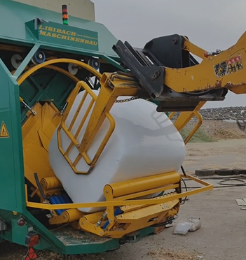 目前,我司正在為大型奶牛牧場進行濕貯發酵玉米的灌裝及裹包加工作業。