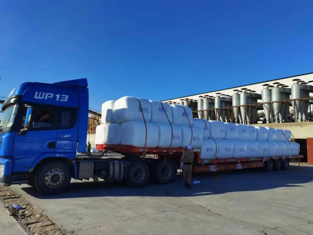 3、噸袋包裝:采用灌裝機灌裝到所需型號的灌裝袋中,抽真空,封口,密度200kg·m-3。