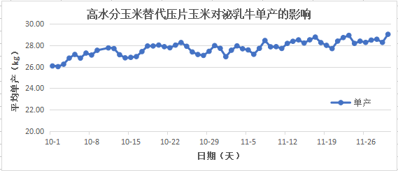 1、高水分玉米替代壓片玉米后牧場單產提升0.73kg。