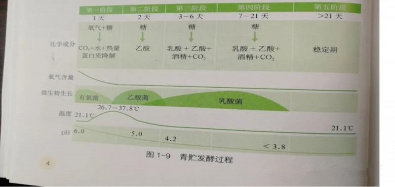 青貯發酵一般至少需要40天,主(zhu)要經過5個階段。