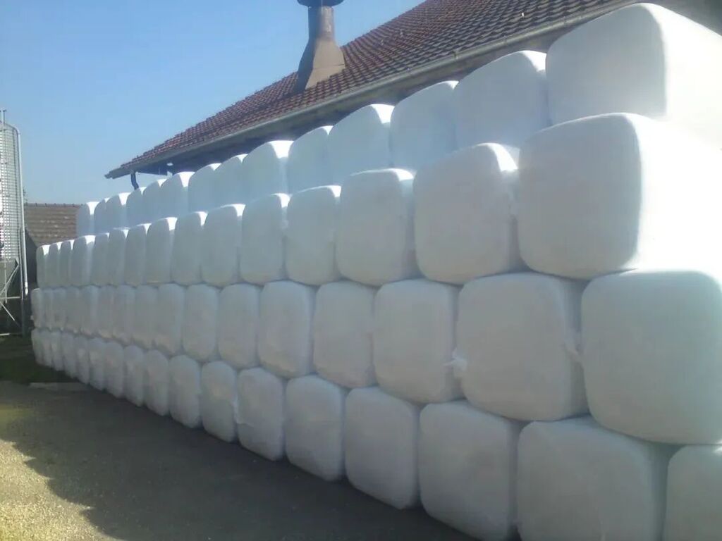 四、如果每天使用飼料量小,可以像切香腸一樣一片一片將直立或橫置的捆包切開。