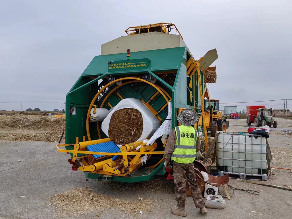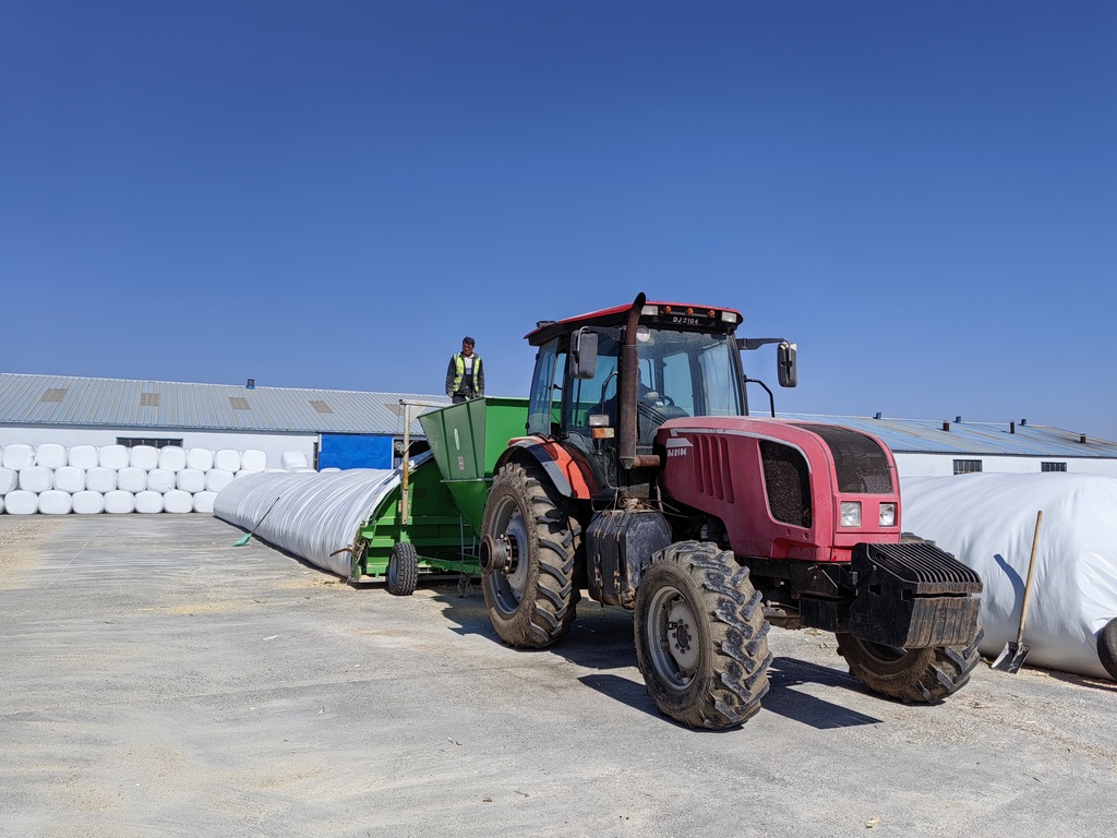 目前,我司正在為大型奶牛牧場進行濕貯發酵玉米的灌裝及裹包加工作業。